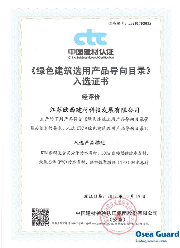 近日,歐西家建科四款產(chǎn)品“DTM聚酯復(fù)合防水卷材”、“LOCA自粘預(yù)鋪防水卷材”、“聚氯乙烯(PVC)防水卷材”、“熱塑性聚烯烴(TPO)防水卷材”獲得國家建筑材料測試中心頒發(fā)的《綠色建筑選用產(chǎn)品證明商標(biāo)準(zhǔn)用證》,并經(jīng)中國建材檢驗(yàn)認(rèn)證集團(tuán)評價(jià)成功入選《綠色建筑選用產(chǎn)品導(dǎo)向目錄》。 隨著推廣綠色建筑上升為國家戰(zhàn)略,綠色建材的評價(jià)標(biāo)準(zhǔn)、綠色建筑的選材技術(shù)規(guī)范及建材產(chǎn)品評價(jià)認(rèn)定等問題成為行業(yè)焦點(diǎn)。為促進(jìn)綠色建材行業(yè)發(fā)展,引導(dǎo)綠色建筑選用綠色建材,國內(nèi)具備建材產(chǎn)品綜合檢驗(yàn)?zāi)芰Φ臋z測機(jī)構(gòu)——國家建筑材料測試中心,經(jīng)中華人民共和國工商行政管理總局商標(biāo)局注冊了“綠色建筑選用產(chǎn)品”證明商標(biāo)。該證明商標(biāo)是用于證明建材產(chǎn)品的性能符合綠色建筑功能需求的標(biāo)志,受法律保護(hù)。 綠色節(jié)能之路是建筑行業(yè)的必然發(fā)展趨勢,歐西建科始終堅(jiān)持“低碳生活,從歐西開始”,踐行“低碳、環(huán)保”的生活理念,堅(jiān)持做匹配綠色建筑的高品質(zhì)產(chǎn)品。此次獲得《綠色建筑選用產(chǎn)品證明商標(biāo)準(zhǔn)用證》,是行業(yè)內(nèi)權(quán)威的國家建筑材料測試中心對歐西建科產(chǎn)品質(zhì)量的認(rèn)可。 |