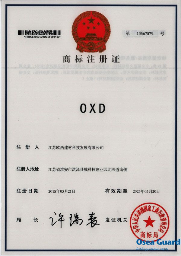 隨著公司業(yè)務(wù)規(guī)模的遞增及業(yè)務(wù)范疇的擴(kuò)大,公司知名度顯著的提高。為滿足公司品牌戰(zhàn)略及市場(chǎng)發(fā)展的需求,提升競(jìng)爭(zhēng)力,公司領(lǐng)導(dǎo)決定申報(bào)“歐西盾、“OXD”商標(biāo),經(jīng)過(guò)國(guó)家商標(biāo)總局的初審核準(zhǔn)、公告等程序,正式獲得由國(guó)家工商行政管理總局商標(biāo)局頒發(fā)的商標(biāo)注冊(cè)證書(shū)。注冊(cè)內(nèi)容涉及范圍廣泛,更加貼合公司的品牌發(fā)展戰(zhàn)略。 江蘇歐西建材科技發(fā)展有限公司的注冊(cè)商標(biāo)的成功申請(qǐng)是公司品牌建設(shè)的重要里程碑,標(biāo)志著公司走上了品牌發(fā)展之路,在國(guó)家允許的服務(wù)項(xiàng)目范圍內(nèi)擁有商標(biāo)的專用權(quán)。凡經(jīng)營(yíng)與我公司相同服務(wù)項(xiàng)目的其他單位和個(gè)人使用相同或相近的商標(biāo)將構(gòu)成侵犯我公司商標(biāo)專用權(quán)的行為,我公司可以依法要求其停止侵害,并有權(quán)要求其賠償損失。 |