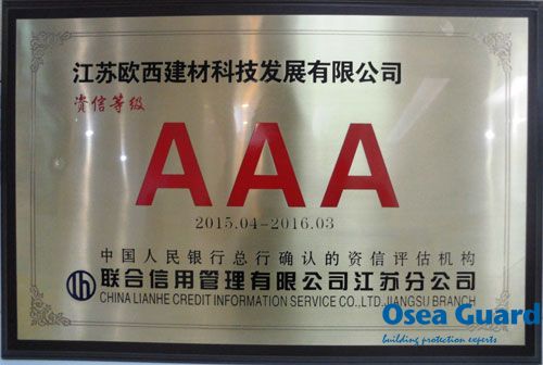 2015年4月,江蘇歐西建材科技發(fā)展有限公司和江蘇歐西建設(shè)工程有限公司被中國(guó)人民銀行總行行確認(rèn)的資信評(píng)估機(jī)構(gòu)—聯(lián)合信用管理有限公司江蘇分公司評(píng)為AAA等級(jí)。 這是對(duì)江蘇歐西多年來(lái)誠(chéng)實(shí)守信、依法經(jīng)營(yíng)的肯定,也標(biāo)志著公司在企業(yè)信用建設(shè)方面再一次取得實(shí)質(zhì)性成果,必將進(jìn)一步增強(qiáng)公司的市場(chǎng)競(jìng)爭(zhēng)力。 江蘇歐西始終重視質(zhì)量信用建設(shè),大力倡導(dǎo)“知信用、守信用、用信用”的良好氛圍,自成立以來(lái)從未有違紀(jì)違法和失信行為,為公司的健康發(fā)展?fàn)I造了良好的資信環(huán)境。 |