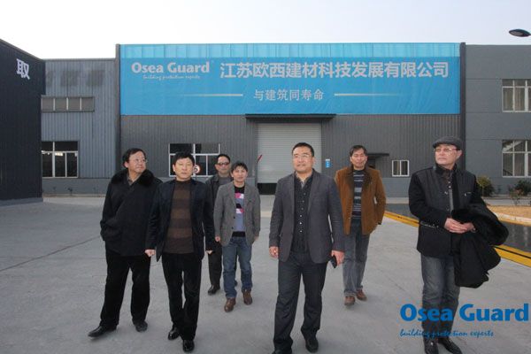 2015年1月23日,江蘇省建筑防水協(xié)會(huì)領(lǐng)導(dǎo)一行蒞臨歐西洪澤生產(chǎn)基地參觀考察。 歐西建科公司總經(jīng)理王洪波帶領(lǐng)協(xié)會(huì)領(lǐng)導(dǎo)先后參觀了涂料車間、卷材車間、倉庫等,對(duì)每條生產(chǎn)線都作出了詳細(xì)介紹,協(xié)會(huì)領(lǐng)導(dǎo)對(duì)歐西建科現(xiàn)代化的生產(chǎn)線以及對(duì)高標(biāo)準(zhǔn)環(huán)保實(shí)施,表示認(rèn)可和贊許。 |
