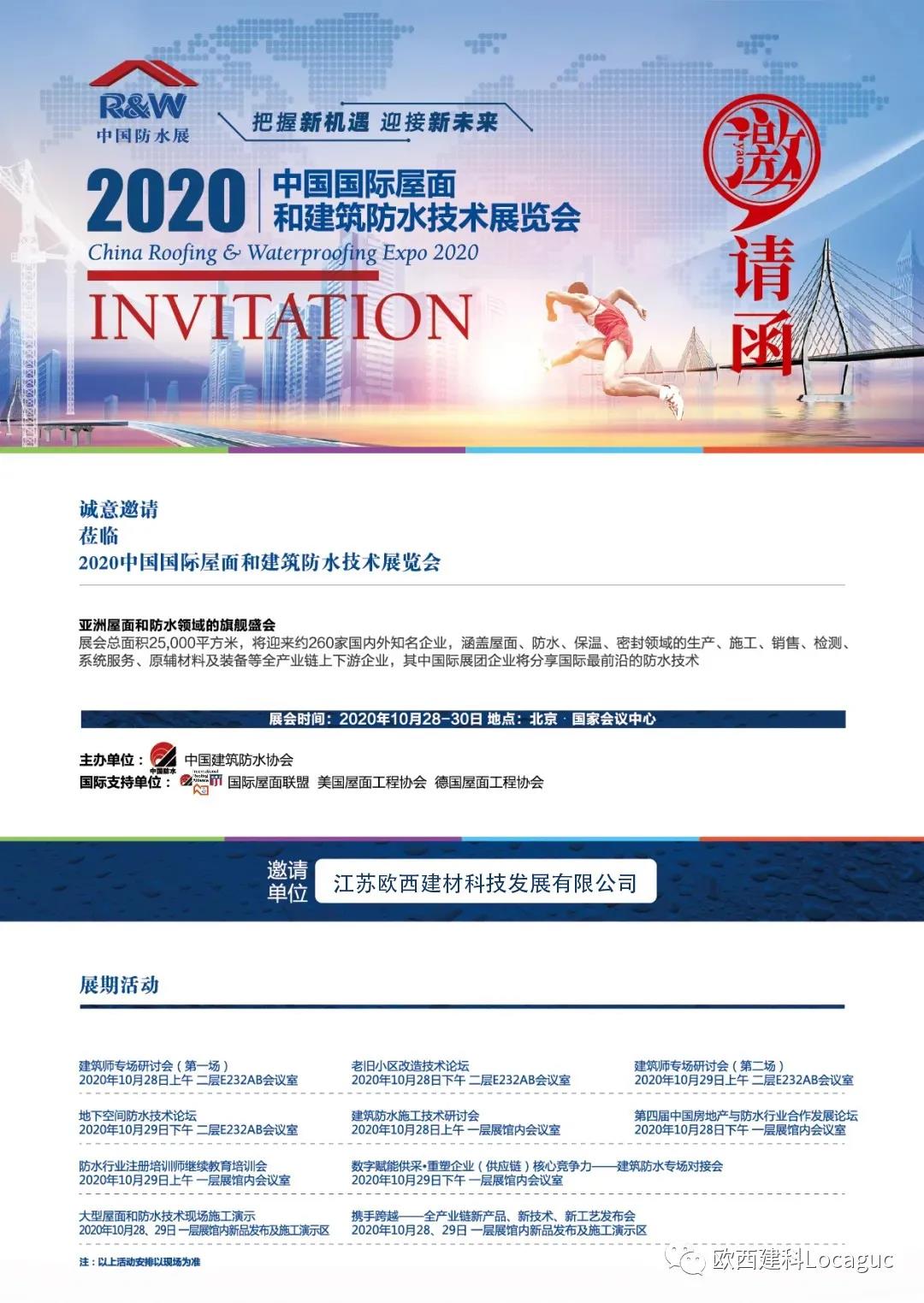 不平凡的2020年,在歷經(jīng)漫長考驗(yàn)后,由中國建筑防水協(xié)會主辦的2020中國國際屋面和建筑防水技術(shù)展覽會將如期于10月28日-30日在北京國家會議中心舉辦。 歐西建科此次展位號為:B區(qū)406展位,歡迎各界朋友前來參觀交流,也預(yù)祝2020中國防水展圓滿成功,希望本屆展會向社會展示防水行業(yè)疫情防控、復(fù)工復(fù)產(chǎn)及行業(yè)發(fā)展取得的顯著成效,呈現(xiàn)后疫情時(shí)期防水行業(yè)勇于面對困難、不斷實(shí)現(xiàn)突破的整體風(fēng)貌,助力企業(yè)把握新機(jī)遇,迎接新未來! |