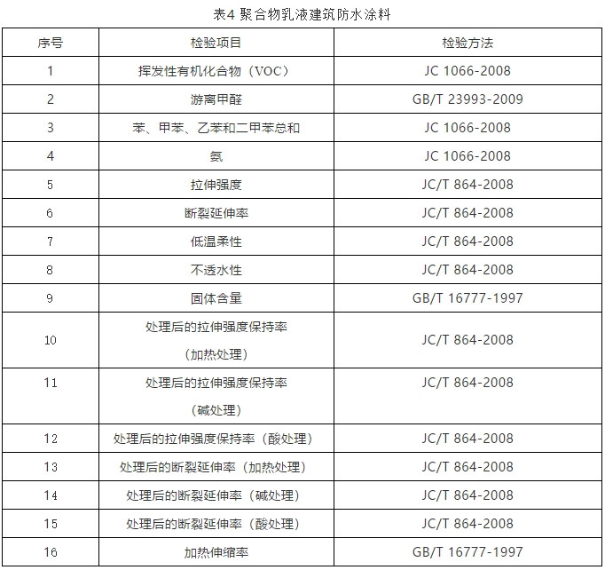 3 判定規(guī)則 3.1依據(jù)標(biāo)準(zhǔn) GB/T 19250-2013 聚氨酯防水涂料 GB/T 23445-2009 聚合物水泥防水涂料 JC/T 408-2005 水乳型瀝青防水涂料 JC/T 864-2008 聚合物乳液建筑防水涂料 JC 1066-2008 建筑防水涂料中有害物質(zhì)限量 現(xiàn)行有效的企業(yè)標(biāo)準(zhǔn)、團(tuán)體標(biāo)準(zhǔn)、地方標(biāo)準(zhǔn)及產(chǎn)品明示質(zhì)量要求 3.2判定原則 經(jīng)檢驗,檢驗項目全部合格,判定為被抽查產(chǎn)品合格;檢驗項目中任一項或一項以上不合格,判定為被抽查產(chǎn)品不合格。 若被檢產(chǎn)品明示的質(zhì)量要求高于本細(xì)則中檢驗項目依據(jù)的標(biāo)準(zhǔn)要求時,應(yīng)按被檢產(chǎn)品明示的質(zhì)量要求判定。 若被檢產(chǎn)品明示的質(zhì)量要求低于本細(xì)則中檢驗項目依據(jù)的強(qiáng)制性標(biāo)準(zhǔn)要求時,應(yīng)按照強(qiáng)制性標(biāo)準(zhǔn)要求判定。 若被檢產(chǎn)品明示的質(zhì)量要求低于或包含本細(xì)則中檢驗項目依據(jù)的推薦性標(biāo)準(zhǔn)要求時,應(yīng)以被檢產(chǎn)品明示的質(zhì)量要求判定。 若被檢產(chǎn)品明示的質(zhì)量要求缺少本細(xì)則中檢驗項目依據(jù)的強(qiáng)制性標(biāo)準(zhǔn)要求時,應(yīng)按照強(qiáng)制性標(biāo)準(zhǔn)要求判定。 若被檢產(chǎn)品明示的質(zhì)量要求缺少本細(xì)則中檢驗項目依據(jù)的推薦性標(biāo)準(zhǔn)要求時,該項目不參與判定。 (本文來自市場監(jiān)管總局網(wǎng)站) |