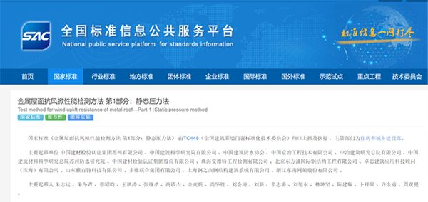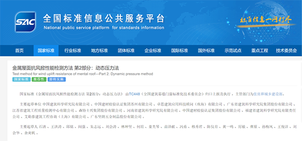 導語 2021年3月9日,國家市場監(jiān)督管理總局(國家標準化管理委員會)發(fā)布國家標準公告(2021年第3號),公告批準頒布了等362項推薦性國家標準,包括GB/T 39794.1-2021《金屬屋面抗風掀性能檢測方法 第1部分 靜態(tài)壓力法》、GB/T 39794.2-2021《金屬屋面抗風掀性能檢測方法 第2部分 動態(tài)壓力法》兩個國家標準。標準由中國建材檢驗認證集團蘇州有限公司和中國建筑科學研究院有限公司分別牽頭,中國建筑防水協會、中冶建筑研究總院有限公司等參加起草。 國家標準《金屬屋面抗風掀性能檢測方法 第1部分:靜態(tài)壓力法》發(fā)布于2021年3月9日,將于2021年10月1日實施。國家標準《金屬屋面抗風掀性能檢測方法 第2部分:動態(tài)壓力法》發(fā)布于2021年3月9日,將于2022年2月1日實施。 靜態(tài)壓力法主要參考了FM 4471-2010《1級平板屋面認證標準》,動態(tài)壓力法綜合了CSA A 123.21-04《動態(tài)風荷載作用下卷材屋面系統抗風揭試驗方法》和UL 580-2009《屋面組件抗風揭試驗方法》的試驗方法。金屬屋面抗風揭試驗方法國家標準的頒布,將有效保證金屬屋面的風荷載安全性,促進金屬圍護系統的推廣應用。 |