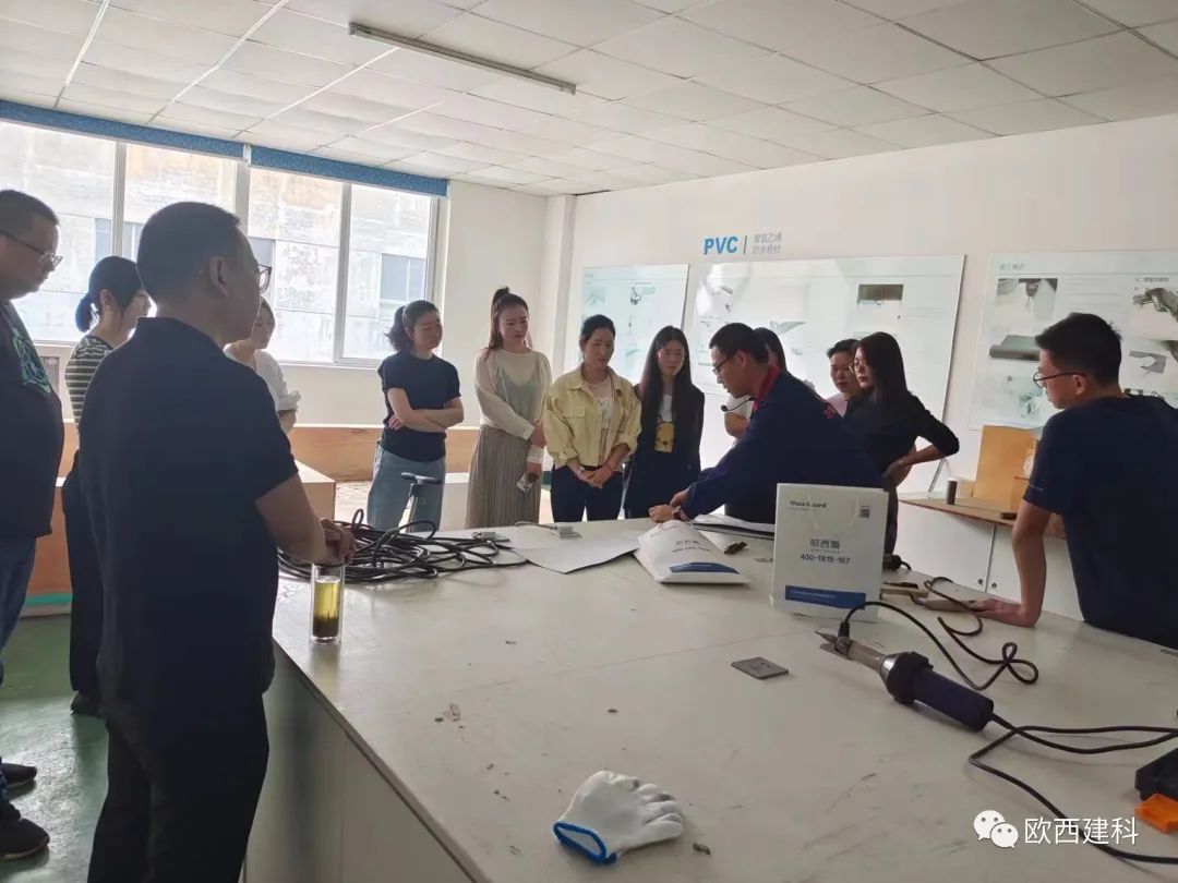 于經(jīng)理采取理論貫穿實(shí)操的教授方法,對歐西盾TPO防水卷材、LOCA預(yù)鋪反粘防水卷材作業(yè)標(biāo)準(zhǔn)化作業(yè)、安全標(biāo)準(zhǔn)化、質(zhì)量標(biāo)準(zhǔn)化等內(nèi)容進(jìn)行了系統(tǒng)講解,現(xiàn)場模擬實(shí)操正確流程及安全注意事項(xiàng),并結(jié)合實(shí)操演練對施工注意事項(xiàng)、焊槍及爬行焊機(jī)使用規(guī)范等內(nèi)容展開了培訓(xùn)等營銷人員通過接受專業(yè)實(shí)操訓(xùn)練,使大家更加直觀的感受到防水卷材在施工中的一些細(xì)節(jié),如陰陽角、管道、通風(fēng)口及樁頭的做法,有效提高了大家的防水專業(yè)技能知知識。