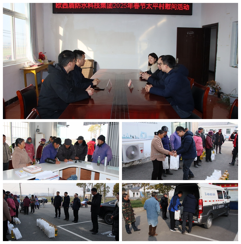 春節(jié)將至,歲寒情深。受集團董事長委派,1月22日上午,歐西盾防水科技集團有限公司組織前往洪澤區(qū)雙溝鎮(zhèn)太平村開展春節(jié)前慰問困難村民活動。
