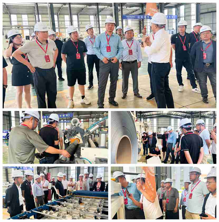 在歐西盾工作人員的引導(dǎo)下,青年企業(yè)家們踏入生產(chǎn)車間,近距離觀摩 TPO/PVC、TPS復(fù)合鋼板生產(chǎn)線,整個生產(chǎn)流程環(huán)環(huán)相扣。從原料配比的嚴(yán)格把控,到成品包裝前的多道檢測工序,清晰展現(xiàn)出歐西盾在防水領(lǐng)域精益求精的工藝水準(zhǔn)與嚴(yán)苛的質(zhì)量管控體系。