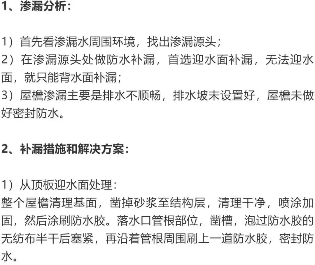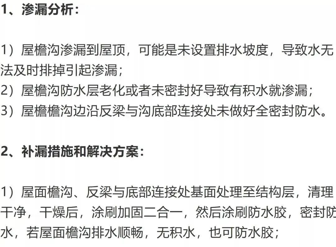 2、補漏措施和解決方案: