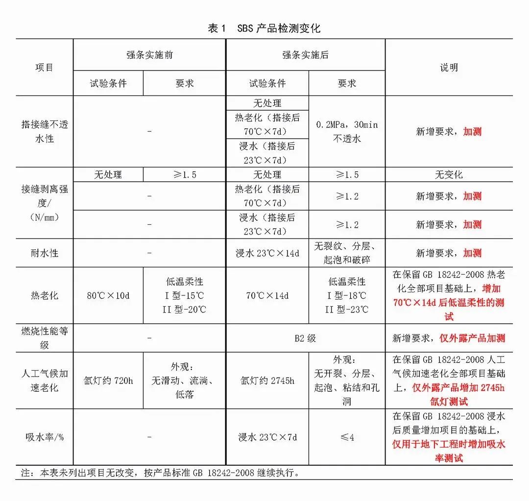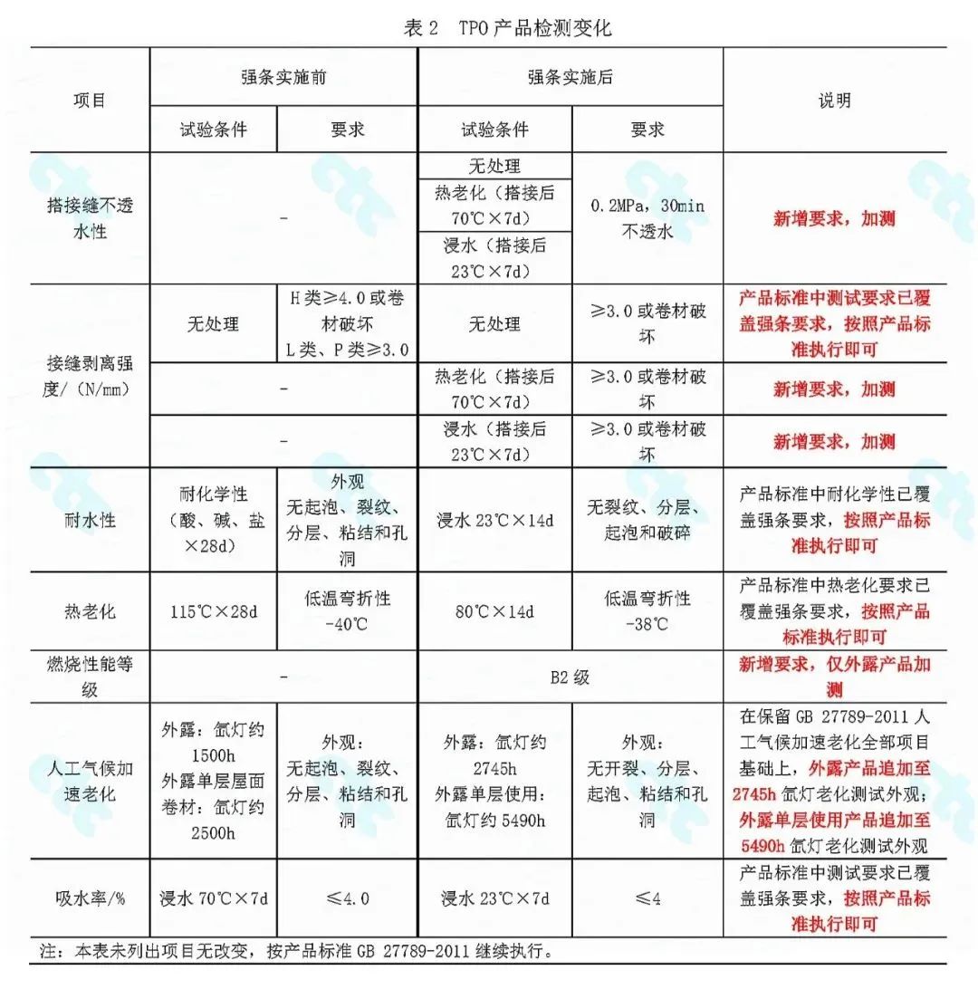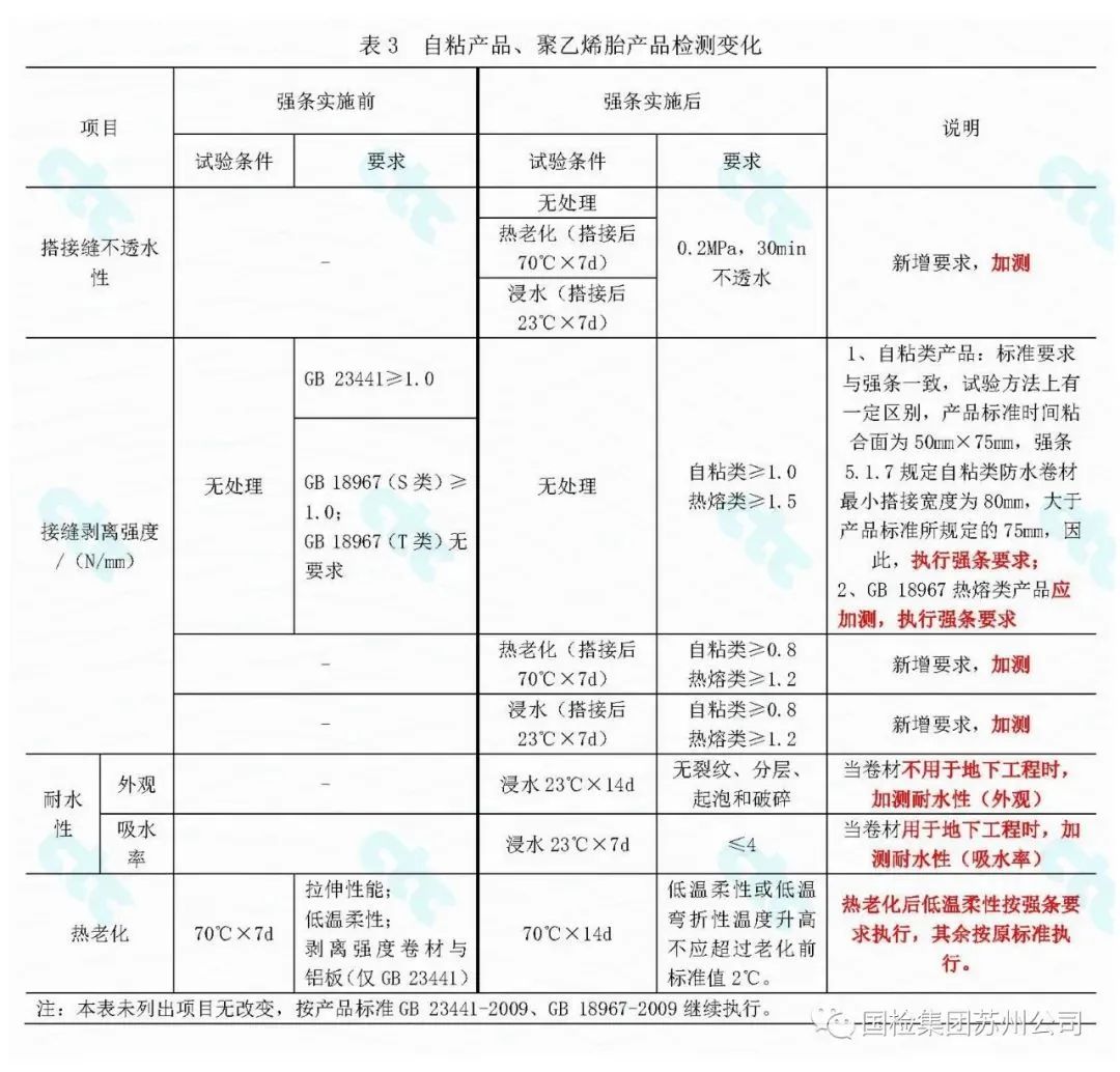 自粘聚合物改性瀝青防水卷材(執(zhí)行標(biāo)準(zhǔn)為GB 23441—2009《自粘聚合物改性瀝青防水卷材》),改性瀝青聚乙烯胎防水卷材(執(zhí)行標(biāo)準(zhǔn)為GB 18967—2009《改性瀝青聚乙烯胎防水卷材》)。自粘聚合物改性瀝青防水卷材和改性瀝青聚乙烯胎防水卷材均屬于瀝青類防水卷材,這兩類產(chǎn)品不適合外露使用,因此不涉及強(qiáng)條規(guī)定外露使用的相關(guān)要求。