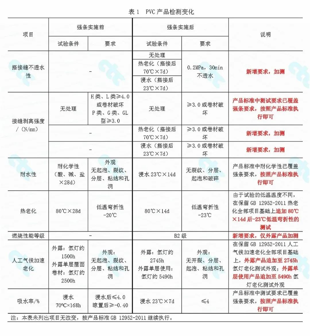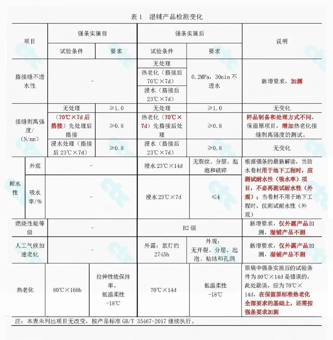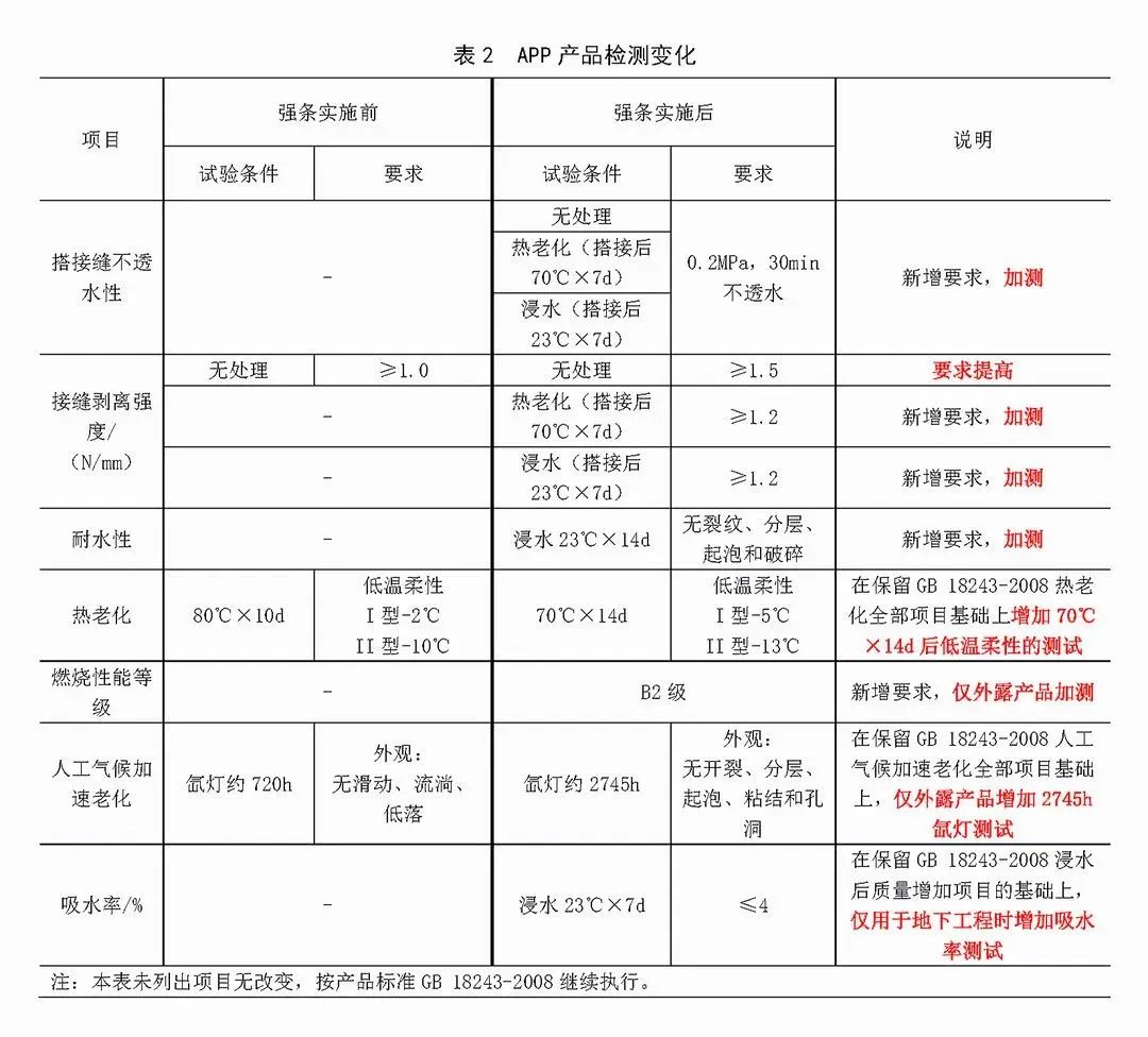 自粘聚合物改性瀝青防水卷材(執(zhí)行標(biāo)準(zhǔn)為GB 23441—2009《自粘聚合物改性瀝青防水卷材》),改性瀝青聚乙烯胎防水卷材(執(zhí)行標(biāo)準(zhǔn)為GB 18967—2009《改性瀝青聚乙烯胎防水卷材》)。自粘聚合物改性瀝青防水卷材和改性瀝青聚乙烯胎防水卷材均屬于瀝青類防水卷材,這兩類產(chǎn)品不適合外露使用,因此不涉及強(qiáng)條規(guī)定外露使用的相關(guān)要求。