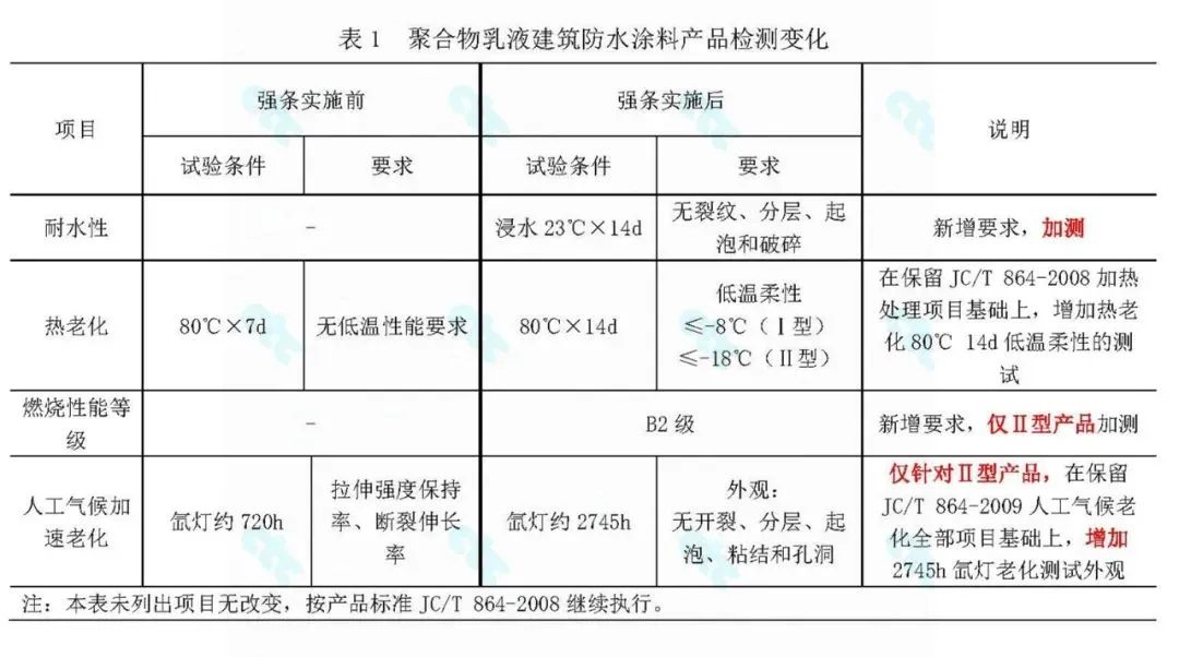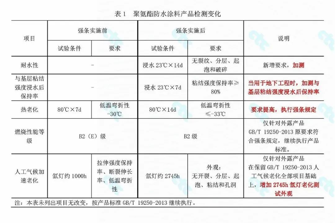 聚氨酯防水涂料(執(zhí)行標(biāo)準(zhǔn)為GB/T 19250—2013《聚氨酯防水涂料》),強(qiáng)條實(shí)施后,防水涂料產(chǎn)品無(wú)需關(guān)注新提出的搭接縫性能,而應(yīng)重點(diǎn)關(guān)注產(chǎn)品的影響環(huán)境物質(zhì)和有害物質(zhì)限量的要求。聚氨酯防水涂料有害物質(zhì)執(zhí)行GB/T 19250—2013《聚氨酯防水涂料》國(guó)家標(biāo)準(zhǔn)中5.3的要求,其他防水涂料則依據(jù)各自產(chǎn)品標(biāo)準(zhǔn),若產(chǎn)品標(biāo)準(zhǔn)沒(méi)有規(guī)定時(shí)應(yīng)執(zhí)行行業(yè)標(biāo)準(zhǔn)JC 1066—2008《建筑防水涂料中有害物質(zhì)限量》的要求。需要注意的是,防水涂料在使用過(guò)程中,還需關(guān)注使用所在地的地方標(biāo)準(zhǔn)、規(guī)章、條例和相關(guān)要求,適用時(shí)應(yīng)符合產(chǎn)品使用所在地的環(huán)保要求。